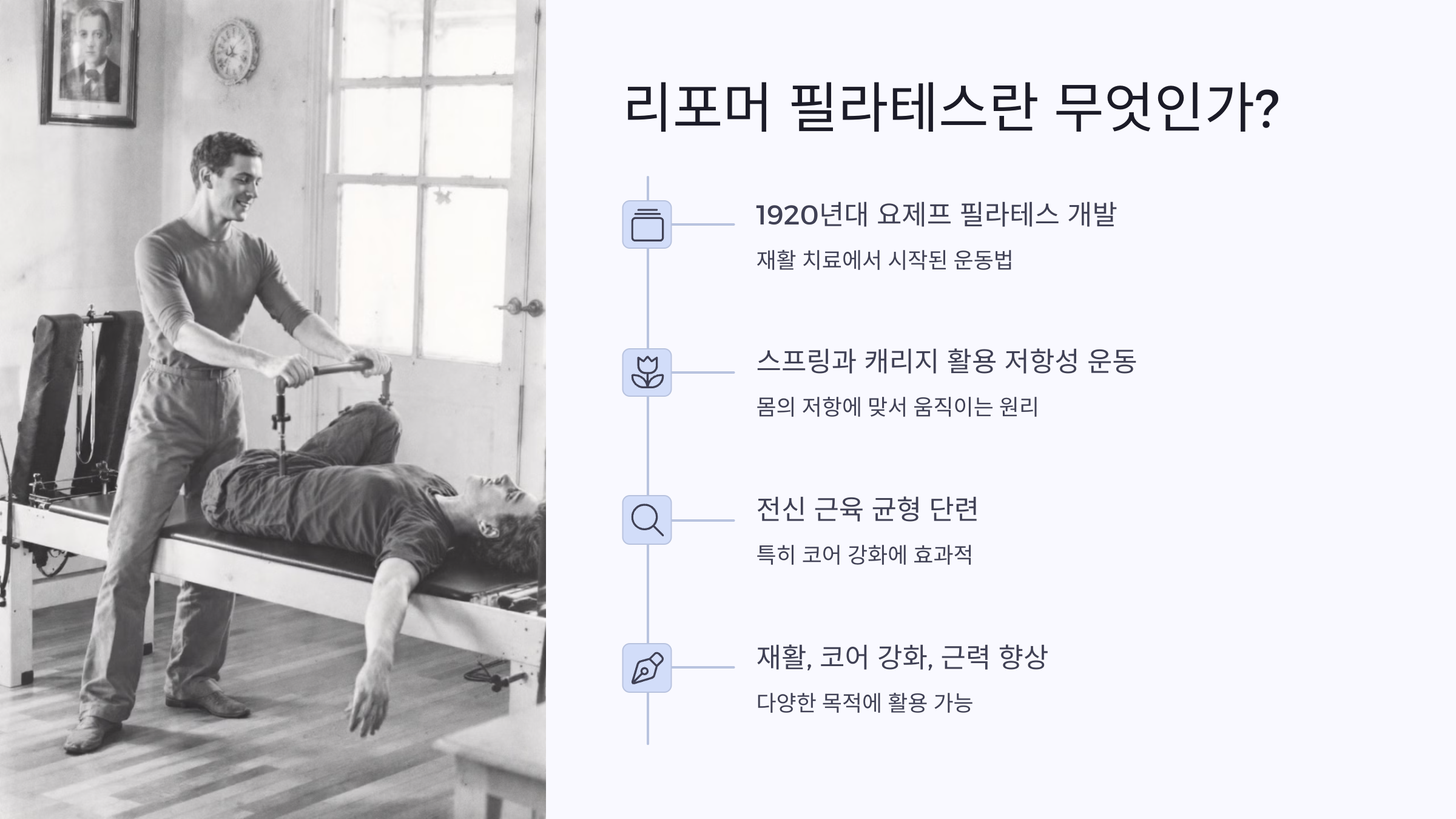- 체형 교정, 재활, 기능 회복 → 리포머